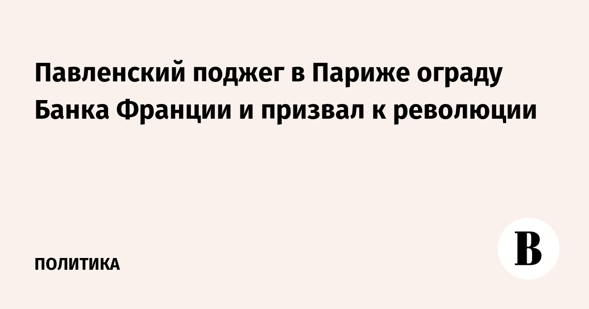 Художник-акционист Петр Павленский задержан в Париже за поджог ограды у здания Банка Франции. Это сообщила в Twitter снимавшая акцию фотограф Капюсин Анри. Она назвала акцию «мировым пожаром революций». Задержали художника в понедельник в 4.10 утра по парижскому времени.